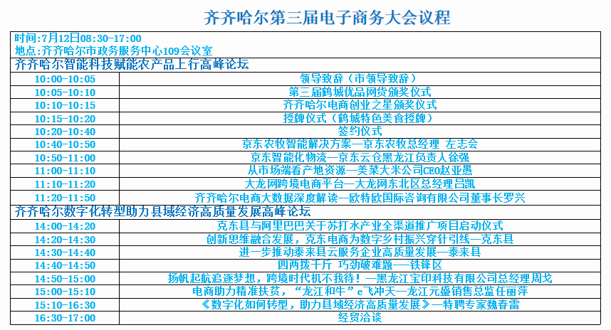齐齐哈尔第三届电子商务大会于本月12日开始,历时3天。以鹤城电商“新时代 新动能 新体验 新智慧”为主题,旨在分享齐齐哈尔电子商务发展前沿理念和成果,洞悉全市电商最新发展趋势,聚焦探讨电商热点话题,加强电子商务示范引导,全面展示我市电子商务发展成果,引领全市电子商务健康有序发展。