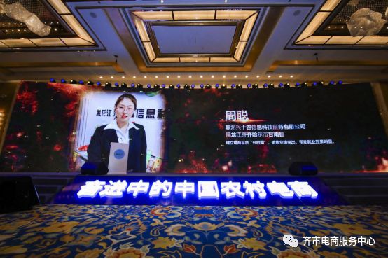黑龙江兴十四信息科技服务有限公司经理周聪在2019中国农村电商致富带头人畅享会上代表获奖人进行经验分享。