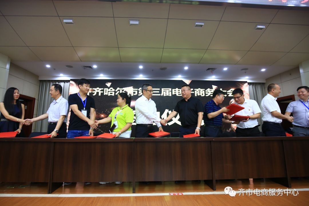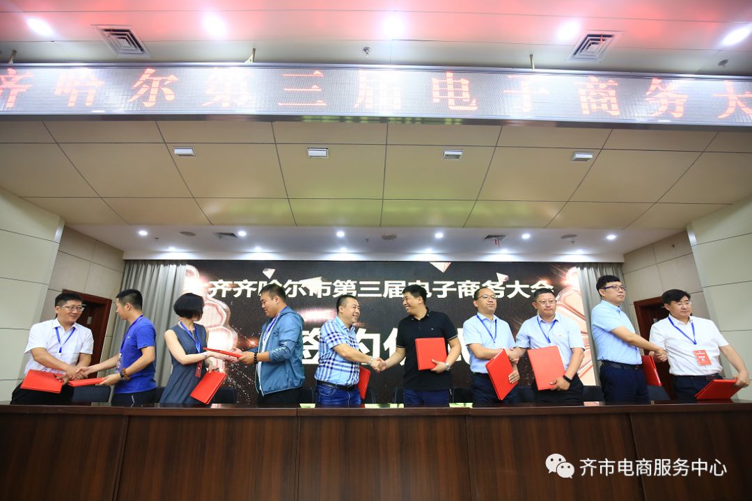 论坛期间,分别举行了齐齐哈尔第三届鹤城优品网货颁奖仪式、齐齐哈尔电商创业之星颁奖仪式、县区十佳特色餐饮名店授牌仪式,同时,泰来县与松雷集团、齐齐哈尔市创业帮科技孵化器与深圳市三宝创新智能有限公司等二十家部门单位和企业代表达成合作意向,在现场共签署了十份战略合作协议。