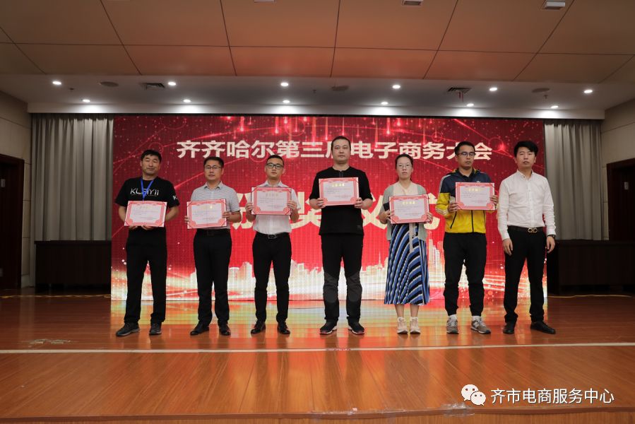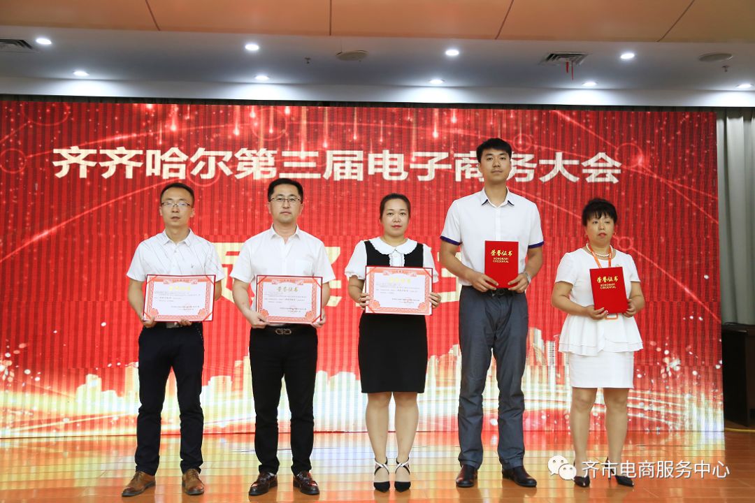 培训会上,现场颁发了齐齐哈尔第三届电子商务大会活动优秀组织奖、特殊贡献奖、县域电商品牌营销奖等。