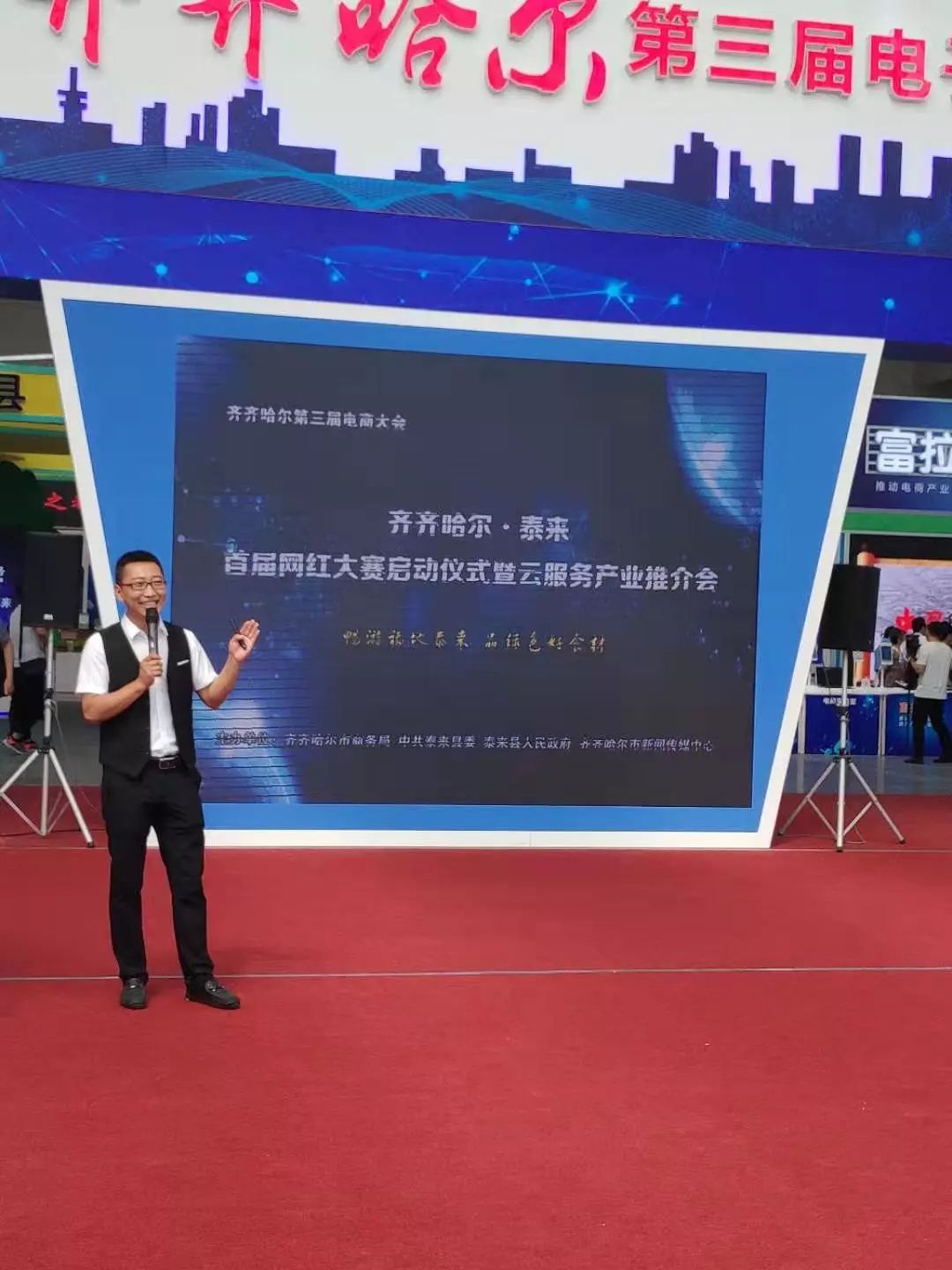 当天,由齐齐哈尔市商务局、泰来县委县政府、齐齐哈尔市新闻传媒中心主办的“齐齐哈尔·泰来首届网红达人评选大赛暨泰来县云服务产业推介会”也正式拉开帷幕。