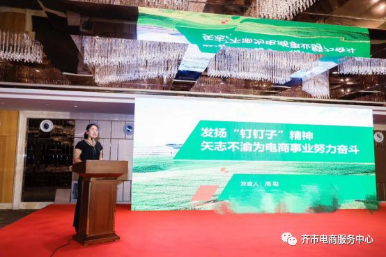 黑龙江兴十四信息科技服务有限公司经理周聪在2019中国农村电商致富带头人畅享会上代表获奖人进行经验分享。