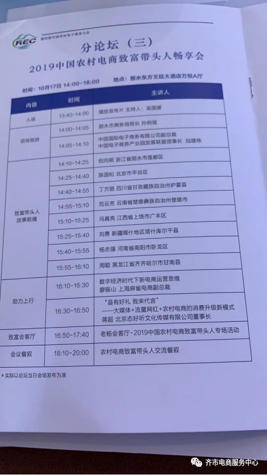 10月17日,第四届中国农村电子商务大会在浙江丽水召开。会议由中国国际电子商务中心、浙江省商务厅、丽水市人民政府共同主办,丽水市商务局、共青团丽水市委、浙江省电子商务促进中心、中国电子商务产业园发展联盟联合承办。自2016年起,中国农村电子商务大会已连续举办四届。