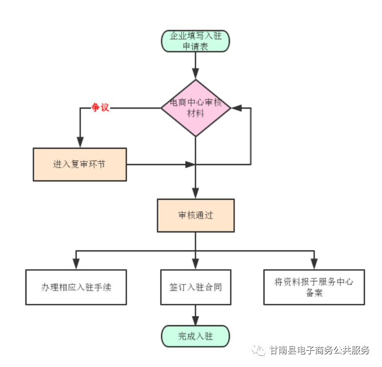 4.入驻:经主管单位审批通过的可以办理相应的进驻手续,与电子商务公共服务中心签订《电子商务产业园入驻协议》,并将相资料报县相关政府备案。