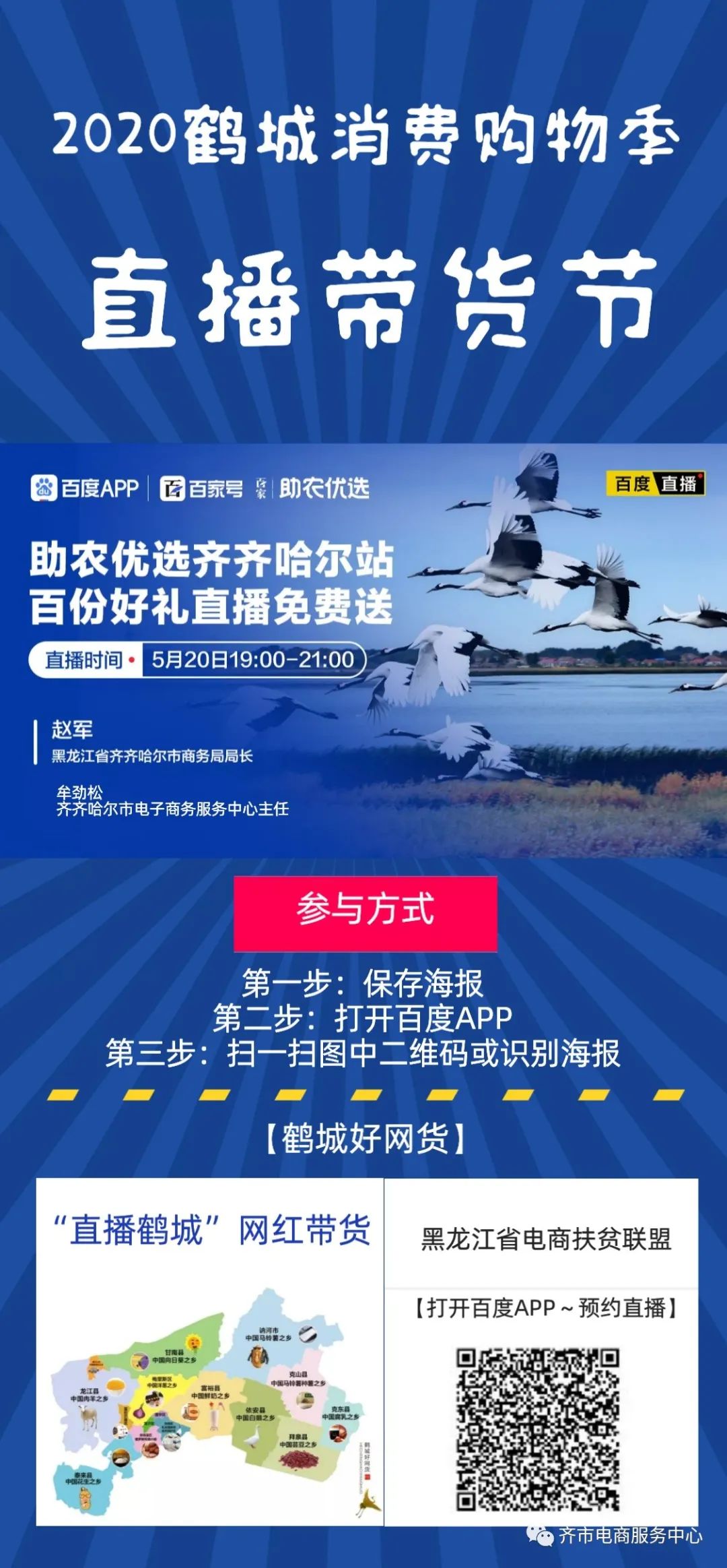 齐齐哈尔市商务局局长赵军将做客直播间,通过直播带货推荐,为家乡农特产品代言,带大家认识不一样的“鹤城好网货”。本期直播得到黑龙江省电子商务扶贫联盟、百度百家号的大力支持。齐齐哈尔市电商服务中心主任牟劲松还将详细为大家介绍鹤城好网货。