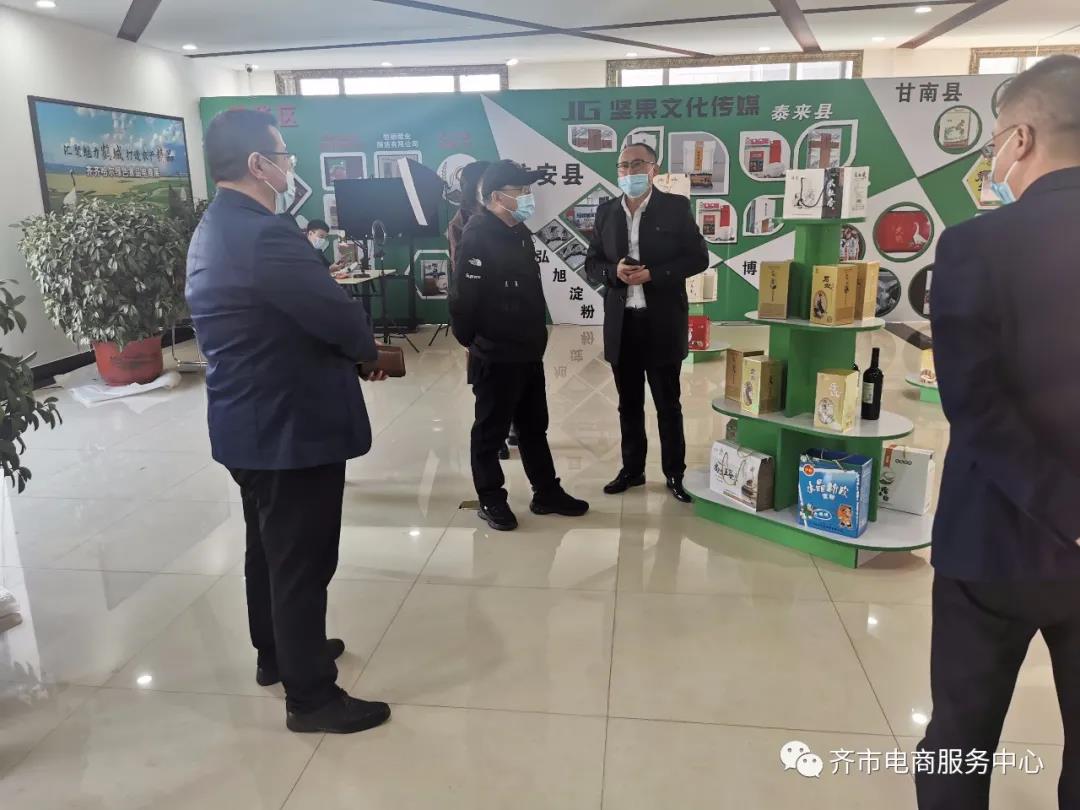为贯彻落实省政府办公厅关于《黑龙江省直播电商发展三年行动计划(2020-2022年)》(黑政办规〔2020〕22)文件精神,了解各地直播电商基地和直播电商企业运行情况,全面了解直播电商产业发展现状,4月13日,省商务厅电子商务处黄文福处长、哈尔滨市标准化研究院宋韶辉院长及工作人员一行三人到我市进行考察调研。市商务局四级调研员何英武、电商处长王兴君、电商中心主任牟劲松全程陪同。
