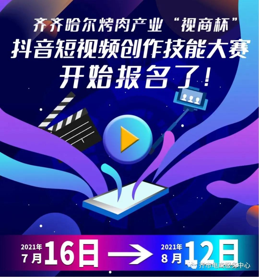 由齐齐哈尔市高新区创业中心、齐齐哈尔市电子商务服务中心联合主办的“齐齐哈尔烤肉产业视商杯抖音短视频创作大赛”,将于2021 年 7 月 16 日—8 月 12 日 期间举行。活动将围绕“烤肉看齐!”为主题开展短视频创作大赛,要求作品以齐齐哈尔烤肉的实情实景进行创作及拍摄。此次活动的开展不仅可以弘扬齐齐哈尔烤肉文化,推动产业发展。还可以通过活动集聚大量视频创作类人才,为齐齐哈尔烤肉向百亿级发展储备技术力量。