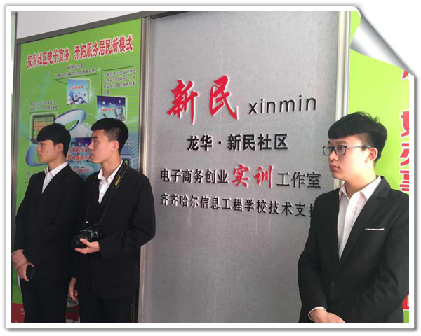 2017年5月12日,我校与铁锋区新民社区共同合作成立了齐齐哈尔首家“社区电商创业实训工作室”,56名社区居民参加了此次活动。
