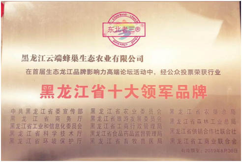 来自齐齐哈尔市的黑龙江云端蜂巢生态农业有限公司东北老三品牌,在首届生态龙江品牌影响力高端论坛活动中,经公众投票荣获行业“黑龙江省十大领军品牌”。
