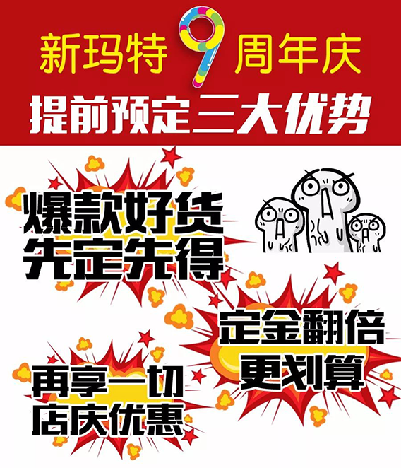 【新玛特9周年庆】极致好货火速预定,定金至高翻100倍,先定先得!