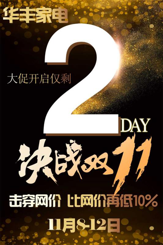 【华丰家电】11月8-12日决战双11,比网价再低10%。举个例子,就是平时卖1999元的净水器,双11电商卖1769元,华丰家电只要1599元。另外,还白送您20元抵100元优惠券及900ml豆油,数量有限,先来先得。此外,海信电视内购专场同步举行。