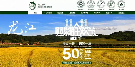 2017年9月18日,天猫龙江原产地商品官方旗舰店顺利上线,成为全球首个以县域命名的卖场型旗舰店,历经一个多月的运营筹备,龙江大米、龙江小米双双入驻2017年“双十一”主会场,开创了天猫新店入驻“双十一”主会场的先河,仅双十一当天销售量突破万余单,龙江大米客单价达到49.9元/5kg和73.9元/5kg,龙江小米客单价达到42.9元/2.5kg,销售额近百万元,特别是龙江红谷小米和龙江麦饭石大米在线上销售火爆,受到消费者的广泛青睐。
