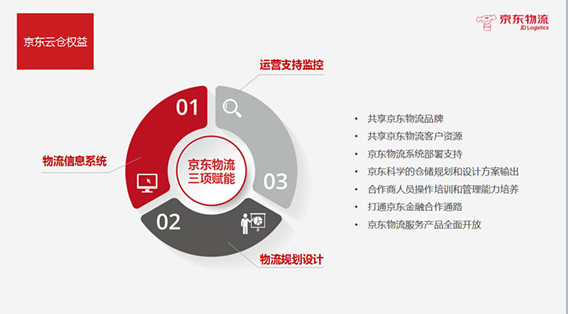 京东云仓是京东物流最新推出仓储服务模式,通过强强联手符合京东物流要求的三方仓储资源商,为其提供库内管理系统和库内操作标准,以更多的仓储资源选择,将企业的供应链和仓储系统无缝接入京东物流系统,为商家提供一体化的物流解决方案。京东云仓,将不只是资源的集成,还将提供物流信息系统、物流规划设计、运营支持监控三个方面的服务,共享京东物流品牌,共享京东物流客户资源,京东物流系统部署支持,提高合作商人员操作培训和管理能力培养,打通京东金融合作通路拉升合作资源商的综合物流水平。