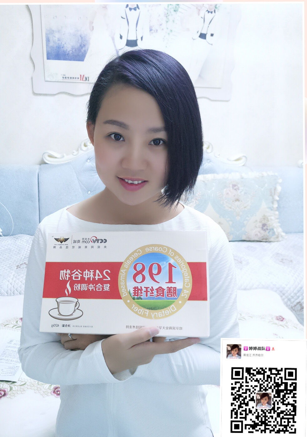 【泰来五谷198,健康带回家】我是陈婷婷,今年29岁,微商营销四年,家乡五谷杂粮粉198,五谷为养,养生,减肥,调理,回复自愈力。一包小小198,包含24种五谷杂粮,让您每天都可以吃到这么多的营养谷物,带着198,健康带回家。请扫一扫二维码关注我!