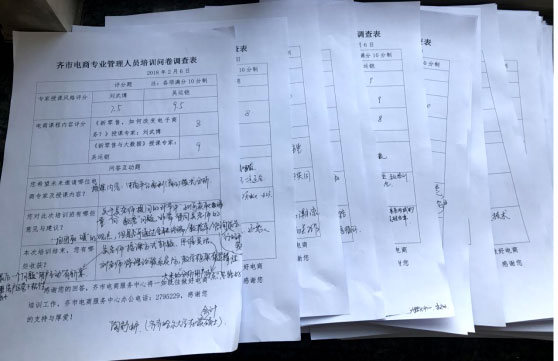 培训结束前,特向在场学员发放此次培训的问卷调查表,共计收回100余份有效调查表,市电商服务中心将梳理问卷信息,进一步做好电商培训工作。