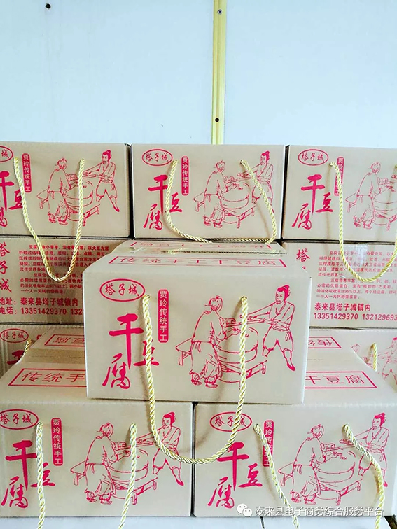 随着电商进入农村,她的视野也开阔了,她开始思考怎么能通过电商让自己干豆腐走出去呢?2016年,贾玲在参加电商办组织的多次培训和营销活动后,她受到了启发,在干豆腐的包装上进行了改良,不但样子精美,也解决了产品的储存和配送的问题。