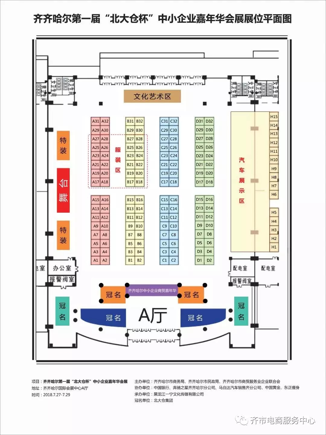 协办单位:齐齐哈尔市电商服务中心、齐齐哈尔市商贸服务业企业联合会、黑龙江北大仓集团有限公司、中国银行、建设银行、奔驰之星齐齐哈尔分公司、中国黄金、东正美业、马自达汽车销售齐齐哈尔分公司、黑龙江大通房地产开发有限公司、齐齐哈尔顺鑫源广告传媒有限公司