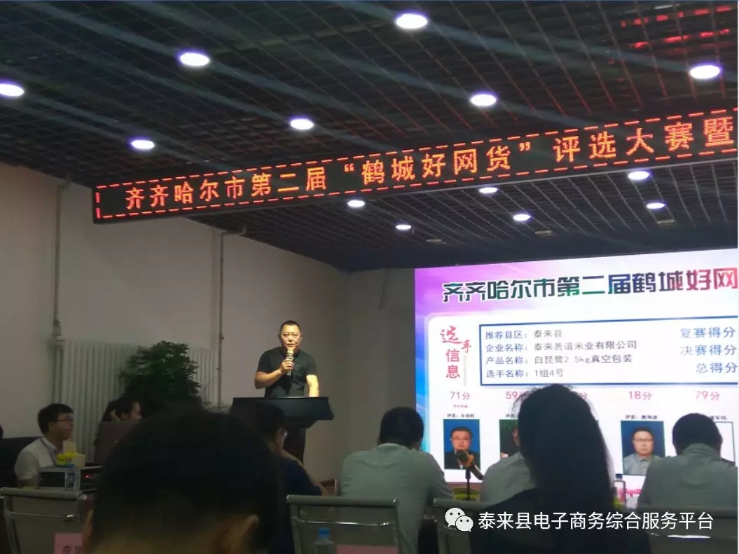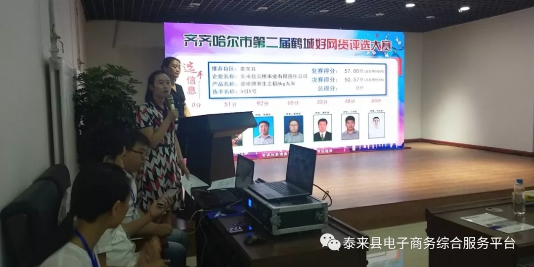 2018年8月18日,经过了紧张的初赛和复赛的角逐,齐齐哈尔市第二届“鹤城好网货”大赛的决赛正式拉开帷幕,泰来县的云桥米业、绿洲公司、大自然水产、善道米业共计五个单品顺利进入决赛。他们带着自己的产品和准备好的宣传资料及PPT来到了决赛现场,迈着坚毅的步伐,满怀激情地向评委及观众展现着自己的风采。