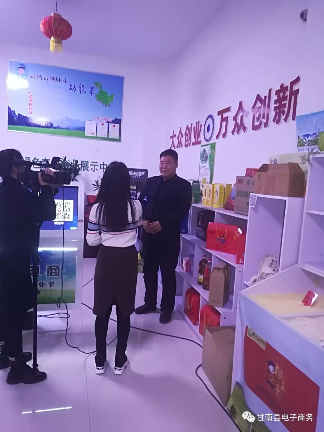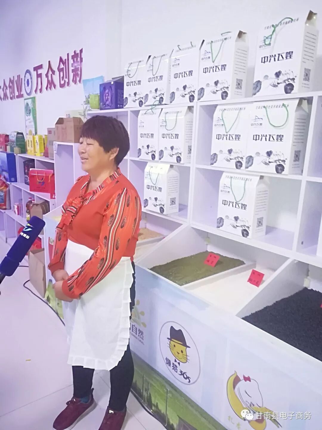 在参观中兴乡时,它们的的品牌中兴飞煌引起了领导们的浓厚兴趣,双方达成了战略合作意向。并且记者采访了蚂蚱姐吕世英,以及甘南县电子商务协会副会长袁茂智。